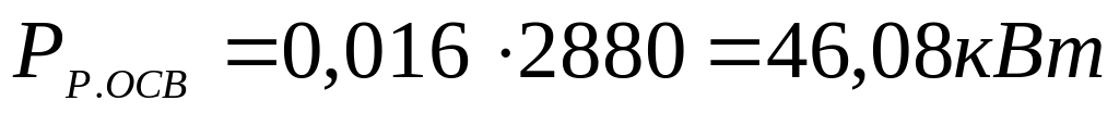 Например, рассчитаем осветительную нагрузку цеха полимеризации: γОСВ =0,016 кВт/м²; F=2880 м²; tgφ=0,33: