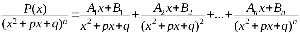 2) если в знаменателе рациональной дроби п одинаковых действительных корней, то