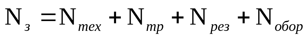 где Nтех — технологический задел, представляющий собой изделия на сборке на рабочих местах линии: ; Nтр — транспортный задел; при непрерывном движении конвейера Nтр= Lp / dтр, при пульсирующем Nтр= Кр nтр; Nрез — резервный задел, равный 2—5 % сменного выпуска изделий; Nобор — оборотный задел, создаваемый на комплектовочной и упаковочной площадках в размере сменной потребности линии.