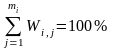 Wi,j – весомость показателя с номером j в группе однородных показателей с номером i, % :