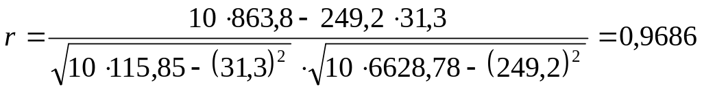 Так как значение коэффициента больше 0,9, то это говорит о наличии весьма высокой связи между признаками.