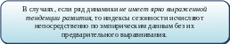 Расчёт индексов сезонности применим лишь тогда, когда тренд исключен из динамического ряда или имеет постоянный уровень
