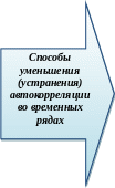 Для уменьшения (или устранения) автокорреляции во временных рядах используют несколько способов: 1)метод включения дополнительного фактора (например: времени); 2)метод последовательных разностей; 3)метод авторегрессионных преобразований.