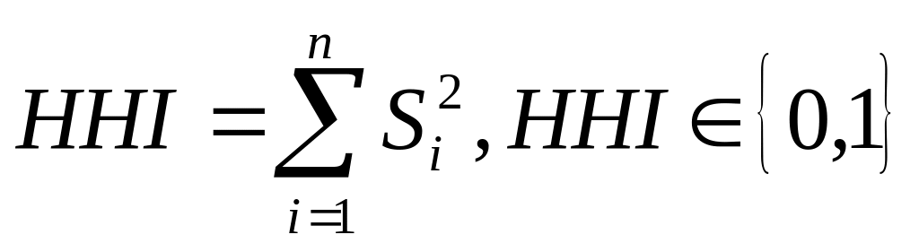 -‐Значения индекса должны меняться в диапазоне от 0 до 1, экстремальные значения должны соответствовать случаям совершенной конкуренции (близко к нулю) и монополии (к единице).