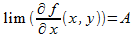 Частной производной функции нескольких переменных по одному из её аргументов называется конечный предел отношения частного приращения функции по этому аргументу к приращению аргумента при условии, что приращение аргумента стремится к нулю |
