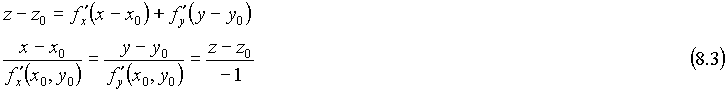 В случае явного задания поверхности уравнением (8.1) и (8.2) примут вид