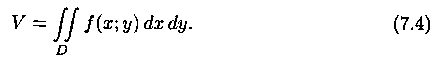 Это равенство тем точнее, чем больше число n и чем меньше размеры «элементарных областей» Di. Естественно принять предел суммы (7.3) при условии, что число площадок Di неограниченно увеличивается (n -> ∞), а каждая площадка стягивается в точку (maxdi-> 0), за объем V цилиндрического тела, т. е.