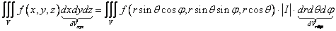 Замена переменных в тройном интеграле осуществляется в общем случае по формуле, аналогичной формуле замены переменных в двойном интеграле. В частности, при переходе к сферическим координатам эта формула имеет вид: