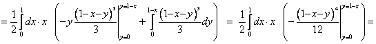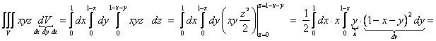 Теперь сводим тройной интеграл к трехкратному в соответствии с системой неравенств и вычисляем его: