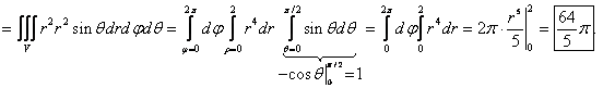 Далее тройной интеграл сводится к трехкратному в соответствии с неравенствами для области V в сферических координатах.