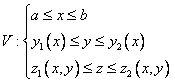 В декартовых координатах область V, правильная в направлении оси OZ, записывается системой неравенств