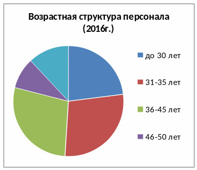 В результате анализа возрастной структуры персонала отделения занятости населения выявлено, что в организации работают сотрудники наиболее трудоспособного возраста. Кроме того, достаточно большое количество молодых специалистов и работников предпенсионного возраст. Сотрудники предпенсионного возраста имеют большой стаж работы и опыт, что очень ценится в учреждении.