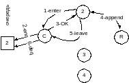 процесс собирается войти в критическую область: рассылает всем запрос enter(метка времени) и ждет от всех OK; если получил от всех OK выполняет действие;
