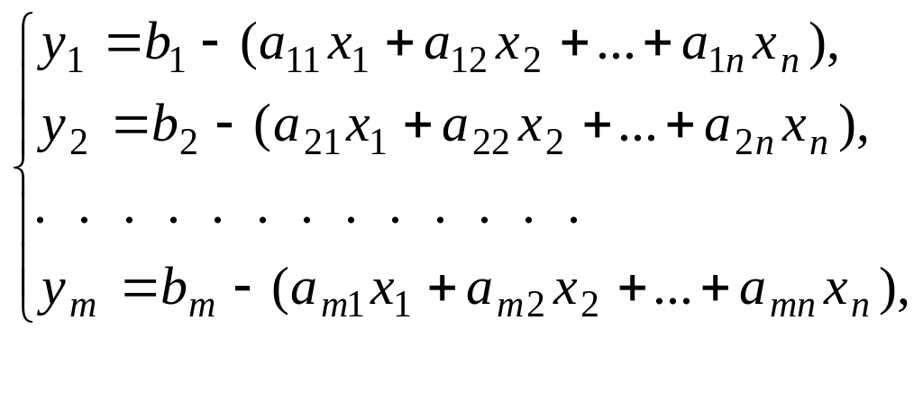 переменных y1, y2,…, ym , с помощью которых система ограничений ЗЛП (2.2)