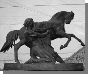 Вот-вот сорвутся с места и помчатся вдаль словно и не бронзовые, а живые кони знаменитой группы «Укротители коней» (Аничков мост в Санкт-Петербурге) замечательного скульптора и литейщика П. К. Клодта (1850 год).
