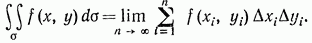 Для того чтобы подчеркнуть, что двойной интеграл можно получить как предел суммы вида вместо обозначения употребляют также обозначение