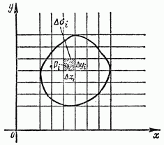 Заметим, что при составлении интегральной суммы площадки прилегающие к границе области а, не имеют формы прямоугольников. Однако можно доказать, что ошибка от замены таких площадок прямоугольниками с площадями в пределе сведется к нулю.