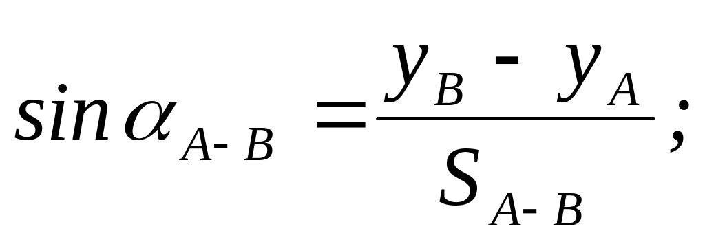 При решении обратной геодезической задачи следует иметь в виду, что повторное вычисление SА–В в варианте I и А–В в варианте II не контролирует вычисление разностей (приращений координат) хВ–хА и yВ–yА, поэтому, вычислив разность, следует алгебраически прибавить ее к координате одной точки, чтобы получить координаты другой. Расхождение в контрольных значениях SА–В и А–В допускается не более двух единиц последнего десятичного знака.