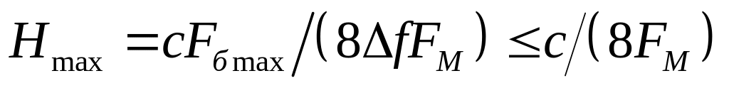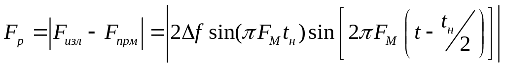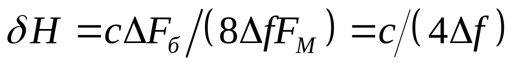 Измерение частоты биений , а, следовательно, высоты, производится по положению спектральной линии, имеющей максимальную амплитуду (она в общем случае может не совпадать с частотой ). Вместе с тем, всякое изменение высоты фиксируется лишь по изменению амплитуды спектральной линии, отстоящей от предыдущей на величину , т.е. минимально фиксируемое изменение равно . Отсюда вытекает, что в случае дискретного спектра имеет место методическая ошибка измерителя дальности, равная, согласно (1.35), соотношению (1.33).