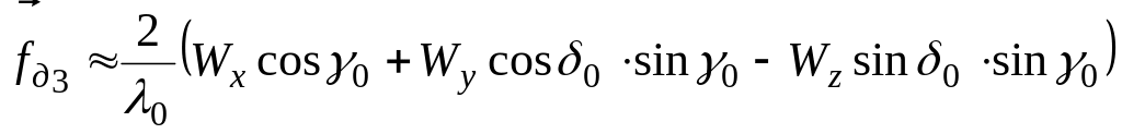 Используя выражения (2.7), (2.8), (2.9) определяем частоты fx, fy, fz, соответствующие продольной составляющей Wx, вертикальной составляющей Wy и поперечной составляющей Wz полной скорости ЛА: