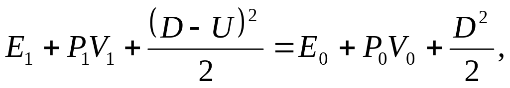 В общем случае неодномерных и нестационарных течений связь между термодинамическими параметрами исследуемой сплошной среды и ее скорость выражается системой нелинейных дифференциальных уравнений движения сплошной сжимаемой среды. Полное решение этих трехмерных по пространственной координате уравнений представляет сложную задачу, недоступную даже для многих современных ЭВМ. Поэтому в исследованиях свойств веществ динамическими методами стремятся создать течения, описание которых можно упростить. К одному из таких течений относится стационарная одномерная ударная волна. Для этой волны связь между термодинамическими и кинематическими параметрами среды выражается уравнениями в простой алгебраической форме. Эти уравнения связывают давление , внутреннюю энергию , удельный объем V или плотность , за фронтом ударной волны с соответствующими параметрами перед фронтом, используя скорость ударной волны D и массовую скорость движения вещества за ней U. Они выражают законы сохранения массы, импульса и энергии в системе координат, в которой невозмущенное вещество перед фронтом ударной волны покоится, имеет соответственно вид [1]: