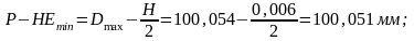Р–НЕисп = (Р – НЕmax) – H = 100,057–0,006 мм.