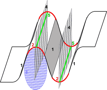 Крыло 2 Замок 3 Ядро 4 осевая пов. 5 шарнир