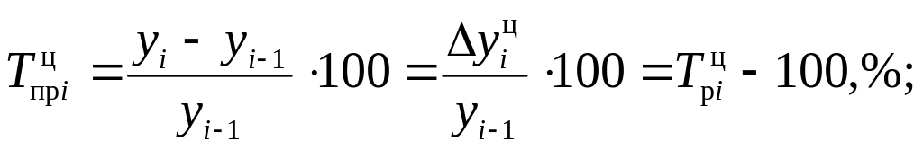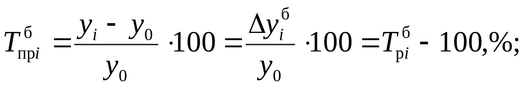 Темп прироста представляет собой отношение абсолютного прироста к уровню динамики, по сравнению с которым он рассчитан. Для ряда динамики темпы прироста могут быть вычислены с переменной базой сравнения, они называются цепными, и с постоянной – базисными.