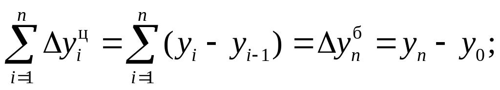 Сумма цепных приростов за определенный период времени равна базисному абсолютному приросту за весь этот период или разности между конечным и начальным уровнями ряда динамики: