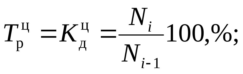 Относительные показатели динамики населения рассчитываются следующим образом: