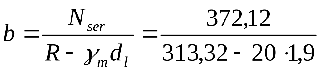 Среднее давление под подошвой фундамента меньше расчетного сопротивления грунта. Принятая ширина фундаментной подушки b=1,4м достаточна.