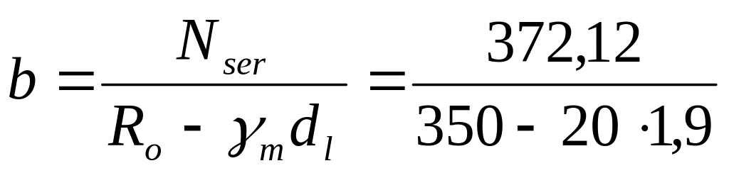 По табл. 11.8 [43] определяем расчетное сопротивление грунта Ro, предназначенное для приближенного определения площади подошвы фундамента. Для суглинка с коэффициентом пористости e=0,5 и числом текучести IL=0 получаем Ro=350кПа.