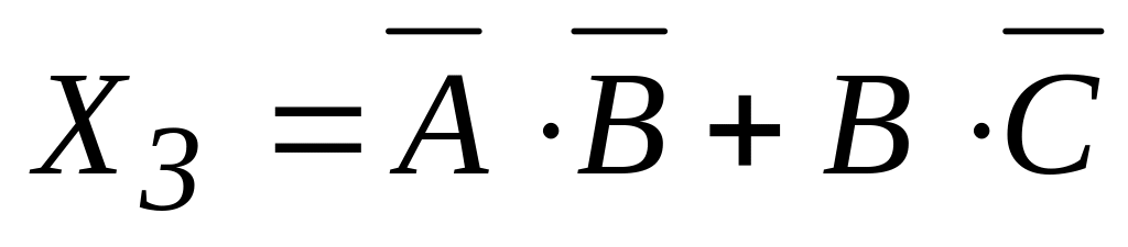 Схема составлена, ее входами являются исходные сигналы A, B и C, а выходом — X.