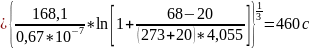 Подставляя соответствующие исходные данные в формулу для определения порогового значения по температуре, получим время достижения температуры срабатывания спринклерного оросителя: