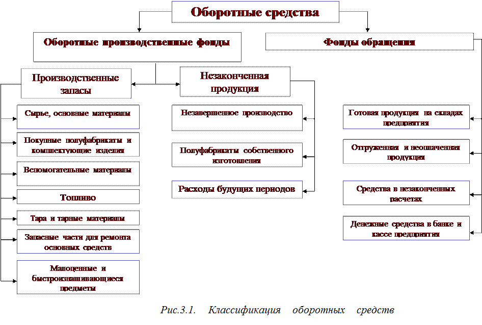 Оборотные средства можно классифицировать (Рис.3.2):