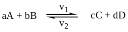 V průběhu chemické reakce ubývá výchozích látek A a B a přibývá produktů C a D. Protože je rychlost v1 chemické reakce úměrná koncentraci výchozích látek, reakce se postupně zpomaluje. Zároveň ovšem probíhá také reakce opačným směrem, kdy z látek C a D vznikají látky A a B. Látek C a D v průběhu reakce přibývá, proto se rychlost v2 této zpětné reakce zvyšuje.