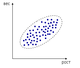 Например, измеряем рост и вес человека, каждое измерение представлено точкой в двумерном пространстве: