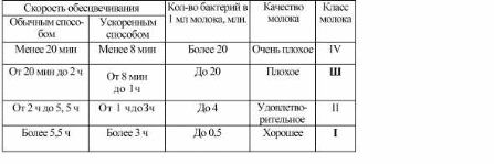 а) Редуктазная проба (арбитражный способ). Микрофлора молока в процессе жизнедеятельности выделяет ферменты, в том числе редуктазу, которая обесцвечивает (восстанавливает) метиленовый синий. Установлена связь между количеством микрофлоры и скоростью обесцвечивания молока с метиленовым синим (Таблица № 2).