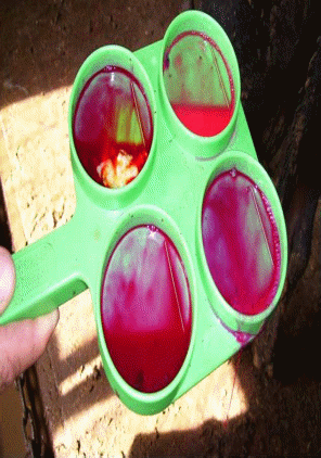 Анализ. В луночки специальной пластинки от каждой доли вымени наливали по 1 мл молока последней порции удоя, добавляли по 1 мл 5%- ного раствора димастина. Содержимое луночки перемешивают стеклянной палочкой. Молоко, полученное от коров, больных маститом, образует плотный тягучий сгусток ярко-красного цвета. Если образуется сгусток желеподобной консистенции красного цвета, то считают, что молоко получено от коров, подозрительных по заболеванию маститом. Нормальное молоко остается однородным, цвет его оранжево-красный.