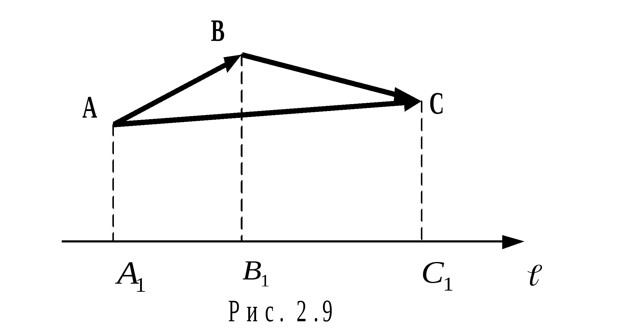 проекция суммы двух векторов на ось равна сумме проекций этих векторов, см. рис. 2.9.