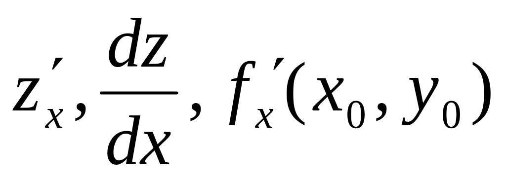 Частные производные функции z=f(x,y) в точке обозначаются так: