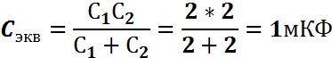 Пример.4. В цепь напряжением 600 В необходимо включить емкость 2 мкФ. В распоряжении имеются четыре конденсатора емкостью 2 мкФ каждый. Рабочее напряжение каждого из них равно 300 В. Как нужно включить конденсаторы для включения их в цепь?