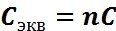 Если параллельно включено п одинаковых конденсаторов, то эквивалентную емкость можно рассчитать по следующей формуле: