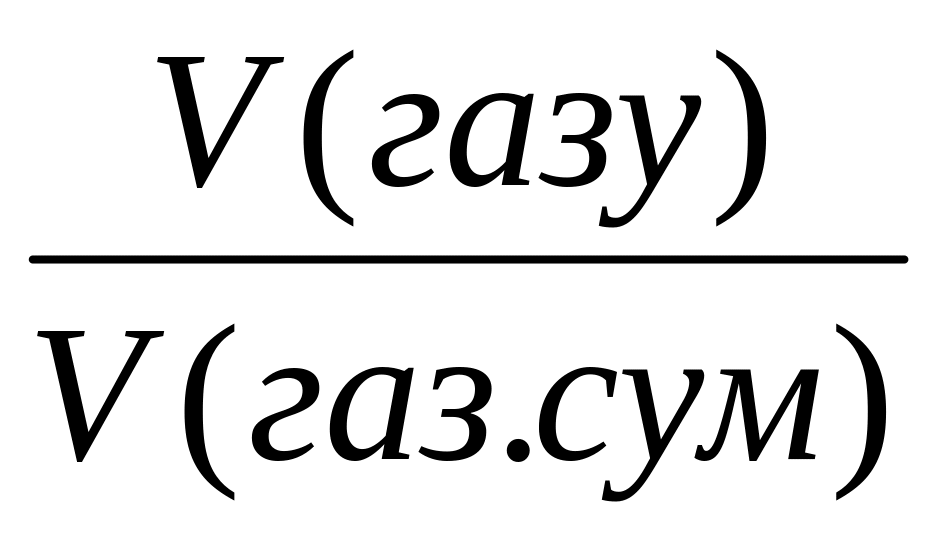 Об’ємна частка (φ) – це відношення об’єму газу одного з компонентів суміші до суми об’ємів газів усіх компонентів суміші(об’єму газової суміші):