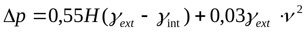 Определим разность давлений воздуха, Па, на наружной и внутренней поверхностях ограждения по формуле: