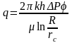 Суточная добыча нефти Qн из элемента эксплуатационного объекта составляет 311,4 т, суточная добыча воды Qв составляет 104,2 т, суточная добыча газа Vг составляет 91970 м3, объемный коэффициент нефти bн равен 1,18, коэффициент растворимости газа в нефти α равен 7,7 м3/м3, плотность нефти ρн составляет 863 кг/м3, коэффициент сжимаемости газа Z равен 0,883, пластовое давление Pпл составляет 7,45 МПа, пластовая температура Тпл составляет 316,3 К, атмосферное давление P0 равно 0,1 МПа, коэффициент проницаемости пласта k равен 0,5·10-12 м2, перепад давления на забое ΔP равен 5 МПа, коэффициент гидродинамического совершенства забоя скважины φ составляет 0,8, половина расстояния между нагнетательными скважинами R равна 400 м, радиус забоя скважины rс равен 0,075 м, вязкость воды µв равна 1 мПа·с. Определить количество воды, необходимой для поддержания пластового давления и приемистости нагнетательных скважин.