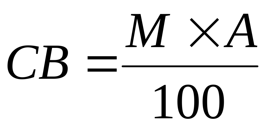 Унифицированная рецептура рассчитана на выход (постоянная величина), равный в натуре 1000,0 кг готовых изделий (без заверточных материалов) или полуфабриката. Выход в сухих веществах приведен согласно расчету. Значения сухих веществ (СВ, кг) сырья, полуфабрикатов и готовой продукции, входящих в колонки Г и Е таблицы унифицированной рецептуры, получены расчетным путем по формуле: