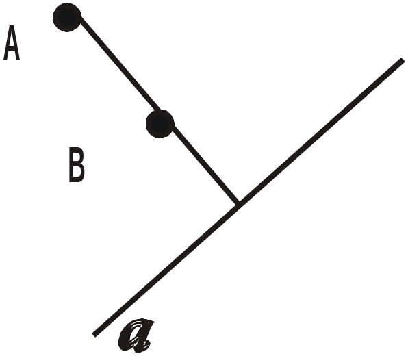 11.Проведіть пряму а і позначте точку В, яка не лежить на прямій. Проведіть з цієї точки перпендикуляр на пряму а.