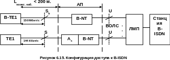 На рисунке 6.15 приведена конфигурация доступа к службам B-ISDN, где используются следующие обозначения: