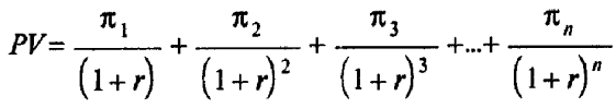 В общем виде концепция текущей стоимости (PV) будущих прибылей, p, выражается как